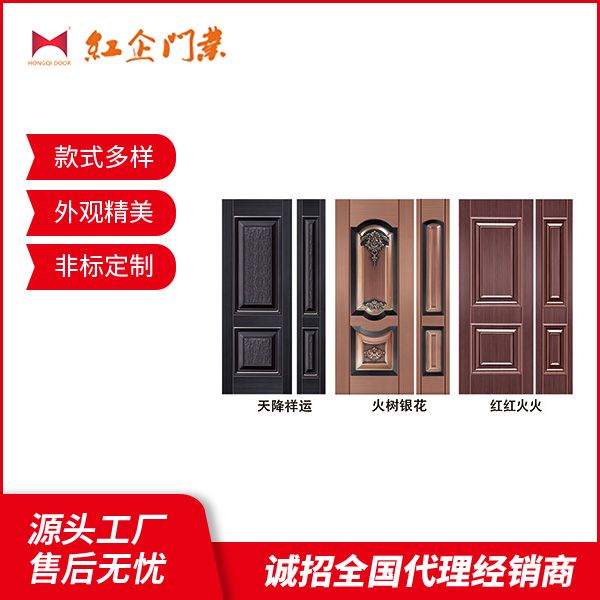 紅企門業一直堅持“信譽為本,客戶為先”的經營理念和生產理念,先后自主研發生產了具有不同風格的中高規格鋼板大門、非標實體門、環保型室內門等。